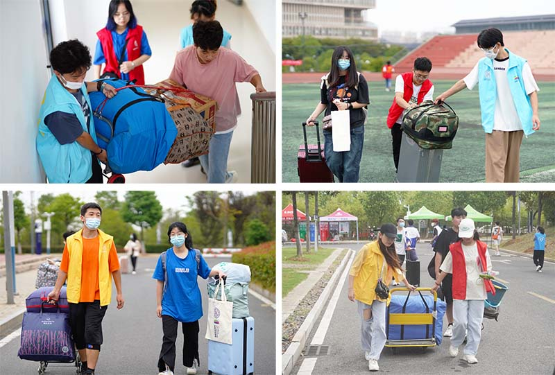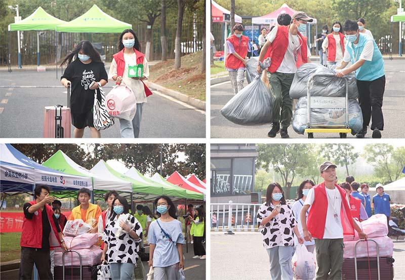 (图为志愿者帮助新生搬运行李)