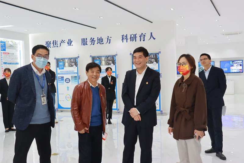 最后,考察团一行参观了双创中心展厅、工业级3D打印实验室、RM训练场、柔性智能制造生产线。汪奇燕向考察团一行介绍了学校在学科竞赛、产学研合作、专利研发、智慧教室建设等方面的创新举措及所取得的一系列成果,窦贤琨在详细了解了学校近年来在科研、教学、竞赛、专利发明等方面的亮点与特色之后,高度认可和赞赏学校近年来取得的成绩。