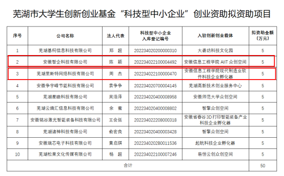 我校学生创业项目获得芜湖市大学生创新创业基金2022年第一批大赛获奖项目转化资助及“科技型中小企业”创业资助