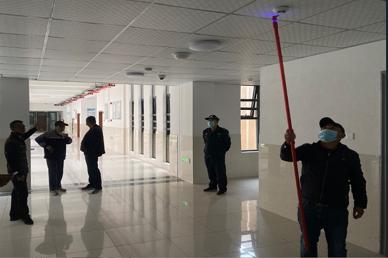 (图为测试宿舍区烟感运行情况)