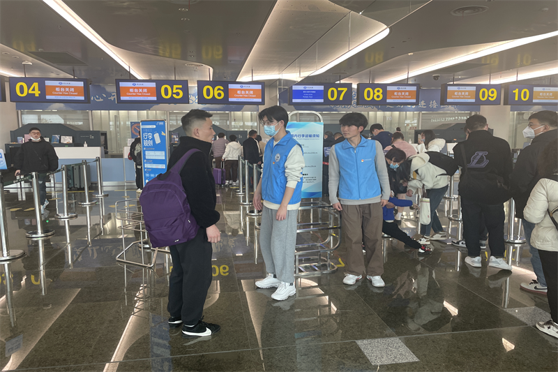 下午两点五十分,党员先锋准时到达机场,在机场组长的细心讲解下,对机场的工作内容和注意事项都有了一定程度的了解,为后续志愿服务做好了充足准备。活动初期,为维持机场秩序,党员先锋分成两个队伍,每个队伍三个人,分别开展不同的服务项目。其中一个队伍主要服务大厅前台,帮助解决旅客的乘机、行李寄存等问题。在活动过程中,党员先锋切身体会到了机场服务的人性化:在面对特殊旅客的值机手续办理时,无论是无陪儿童、老人,又或是残疾人群等,机场都会采取全面的服务来保证旅客顺利登机。另一个队伍则负责引导旅客进行值机手续办理,例如行李托运、安检等。整个过程以“服务大众,大众舒心”为初心,展现出党员先锋积极热情的工作态度,散发出了服务群众、奉献社会的良好风貌,安信工学子起到了先锋模范的带头作用。