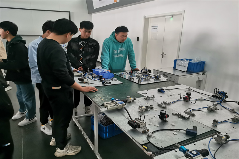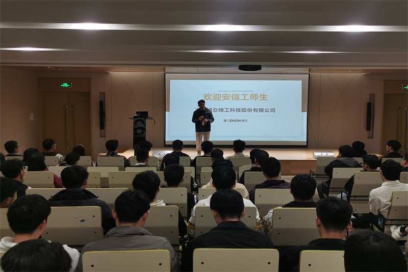首先,由企业相关负责人邹强带领同学们参观博众学院4楼实训平台并且展示技能实训平台。紧接着带领同学们前往一楼展厅介绍企业发展历程如何从一个只有3个员工的小厂成长为1000多人的中小企业,从单一的零件加工、夹治具升级为自动化设备研发和制造、企业在世界的布局、智能产品的展示。随后带领同学们前往科技园三楼报告厅向同学分享公司整体情况,以及“应用工程部”的定位及规划分享,着重介绍了安信工定向班人才培养规划。相关负责人介绍校企合作的培养方向以及考核标准、薪资待遇并且详细回答了同学们的疑问。通过这次座谈会让同学们了解到企业概况,明确了未来的发展方向和专业技术,同学们知识面有了很大扩充。