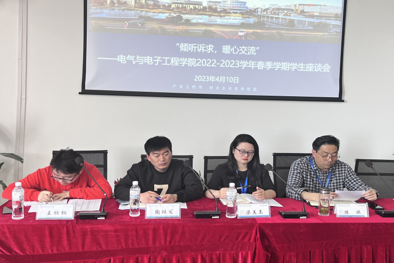 本网讯 为确保学院教学秩序的稳定,进一步提高本科教学质量,加强教风、学风建设,强化教学过程管理,掌握教学各项工作开展,落实“三全育人”教育理念,打造“三特学院”,电气与电子工程学院4月10日中午举行2022—2023春季学期学风座谈会。学院副院长梁美玉、陈振,团总书记吴猛,教学科研秘书陶旺发、王欣桐以及各年级专业辅导员、学生代表参加本次座谈会。座谈会由吴猛主持。