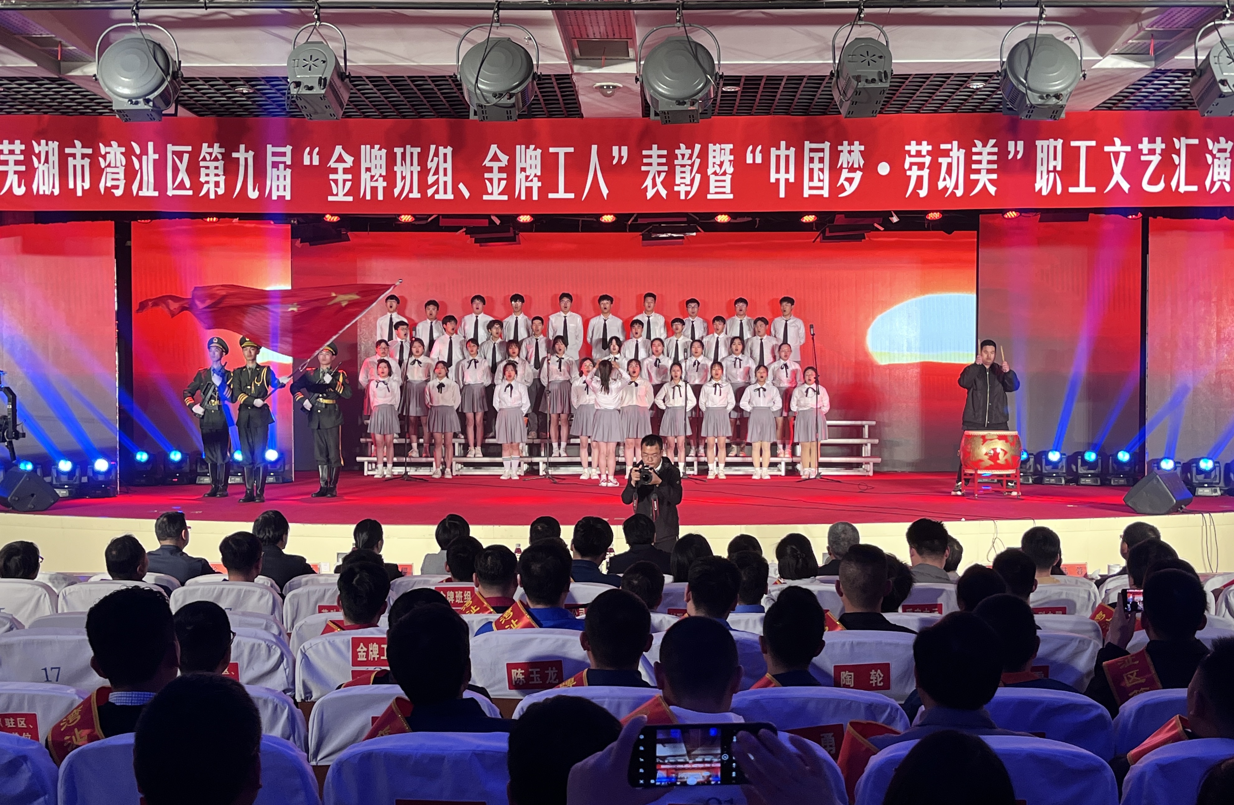 本网讯 4月27日下午,机械工程学院学生合唱团受邀参加芜湖市湾沚区第九届“金牌班组、金牌工人”表彰暨“中国梦•劳动美”职工文艺汇演。本次活动由中共芜湖市湾沚区委宣传部、芜湖市湾沚区总工会、芜湖市湾沚区文化旅游体育局主办,芜湖市湾沚区文化馆承办。