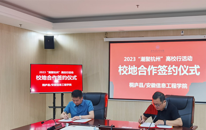 本网讯 5月18日上午,安徽信息工程学院“百日冲刺”系列招聘活动--2023年杭州桐庐县“潮聚桐庐”高校行活动在我校顺利举行,本次活动由安徽信息工程学院联合桐庐县委人才办、桐庐县人力资源和社会保障局共同举办,活动分为校政座谈交流及现场招聘活动同时举行。