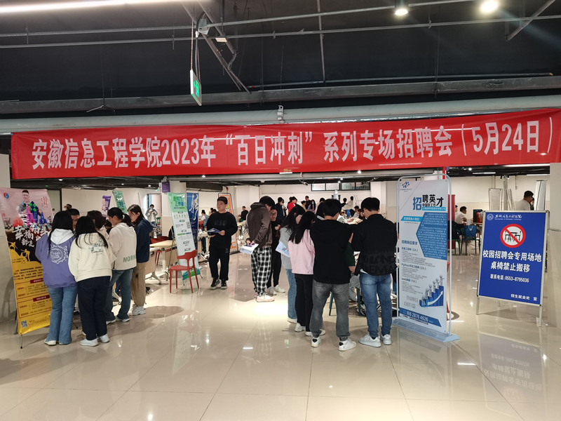 本网讯 为响应安徽省教育厅关于2023届毕业生就业最新工作部署和要求,全力保障我校2023届毕业生充分就业,在毕业生离校前期集中组织举办“百日冲刺”系列招聘活动,5月24日,我校在大学生活动中心举办了第三场“百日冲刺”系列专场招聘活动。