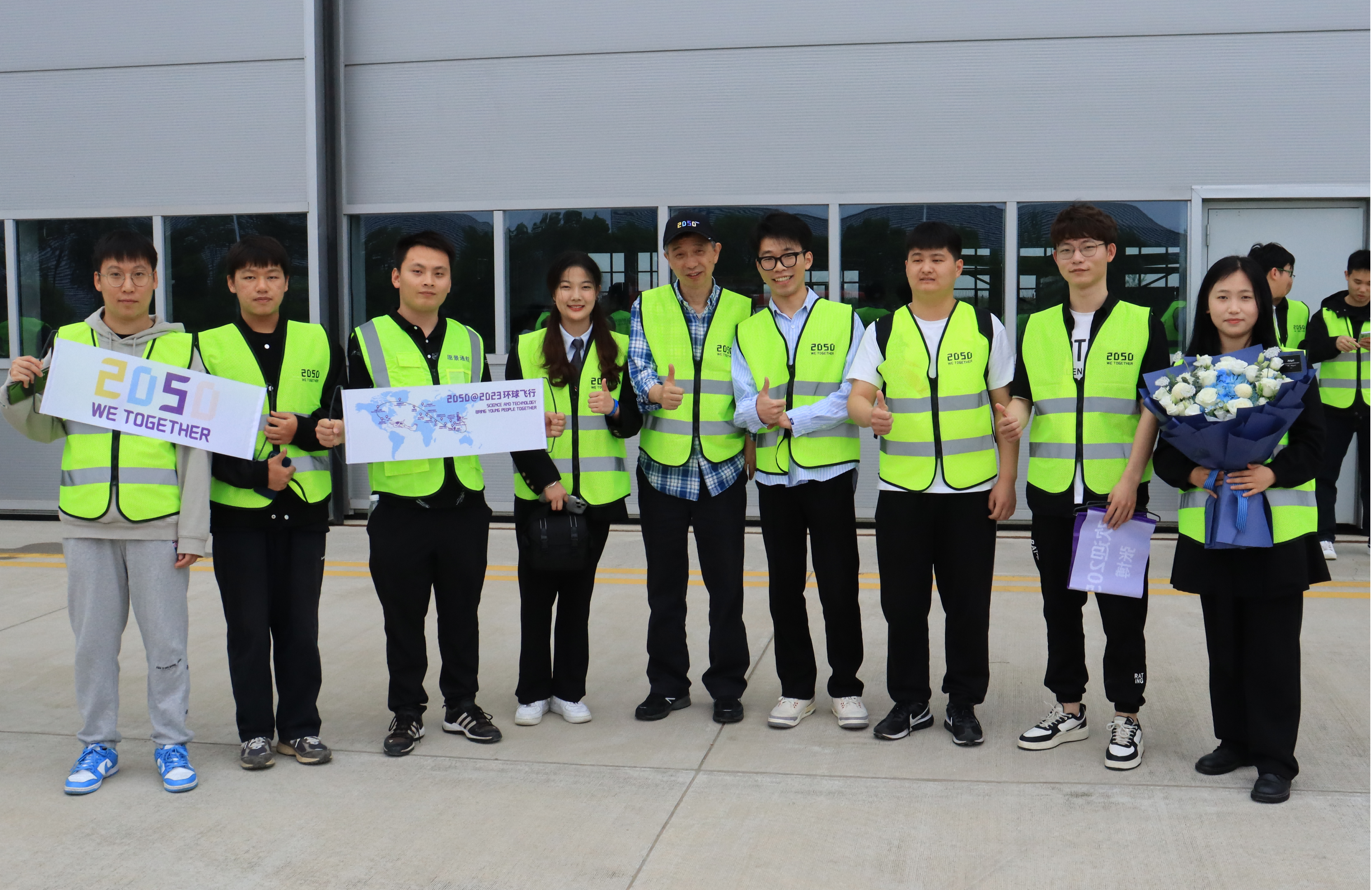 本网讯 6月5日下午,2050环球飞行抵芜接机仪式暨2050公益飞行项目启动及“2050机库”揭牌仪式活动在芜湖三元通用机场举行。中国工程院院士、阿里云创始人王坚,湾沚区委副书记、区长李国柱,中国环球飞行第一人、美国通用航空公司董事长、中美杰出企业家张博等出席。科技处联合紫云英创新创业学院组织我校创新创业师生代表一行参与此次活动。
