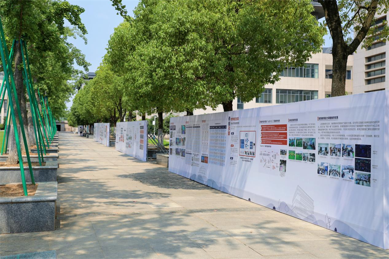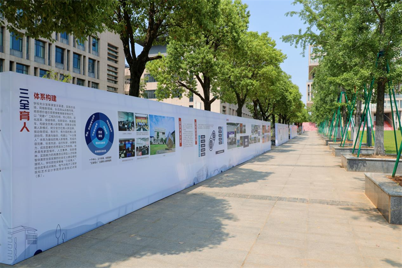 在草坪左右两侧,学校历史沿革和发展情况简介沿路展开,引来步履匆忙的师生们驻足。