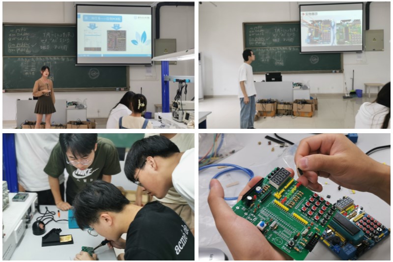 为期四周的挑战项目1包括原理图绘制、PCB元器件布局和布线、收音机焊接、单片机最小系统焊接及电路板调试,每组学生按照老师下达的项目需求完成项目任务,并在此基础上进行项目答辩验收与项目总结报告撰写。挑战项目C1开展期间,各小组成员之间团结合作、互相沟通、积极调试,授课老师们认真指导、耐心讲解。培养了学生理论联系实际的能力,提高分析问题和解决问题的能力,增强独立工作的能力。同时也培养学生之间的团队合作、共同探讨、共同前进的精神。