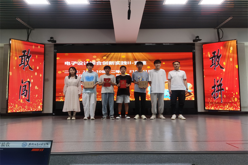 赤日几时过,清风无处寻,7月6日,电子信息工程教研室在A3W401教室举办《电子设计综合创新实践Ⅱ》(电信专业挑战项目2)验收活动,旨在推动本科教育教学改革,全面提高学生综合素质,充分展示学生风采。本着“公平、公正、公开”的原则,特邀请了电气与工程学院院长马利祥,副院长梁美玉、王伟,伯泰克汽车电子有限公司硬件部部长汪光群、软件部经理汪慧现场观赛与点评。