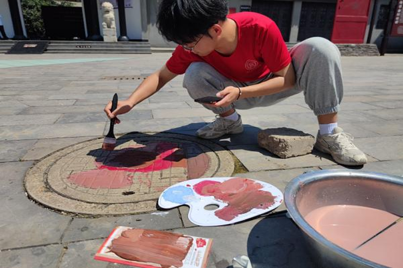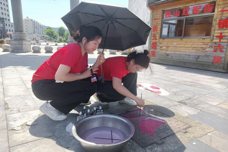最后,团队通过走访调查,深挖红色文化、乡俗历史,并结合乡村新貌,在独山镇井盖上创作了以红色文化为主题的系列绘画作品,获得当地居民和游客的一致好评。系列绘画作品体现了独山镇的美丽风貌和深厚文化,团队成员希望能够借此方式大力宣传独山镇独特的红色文化。