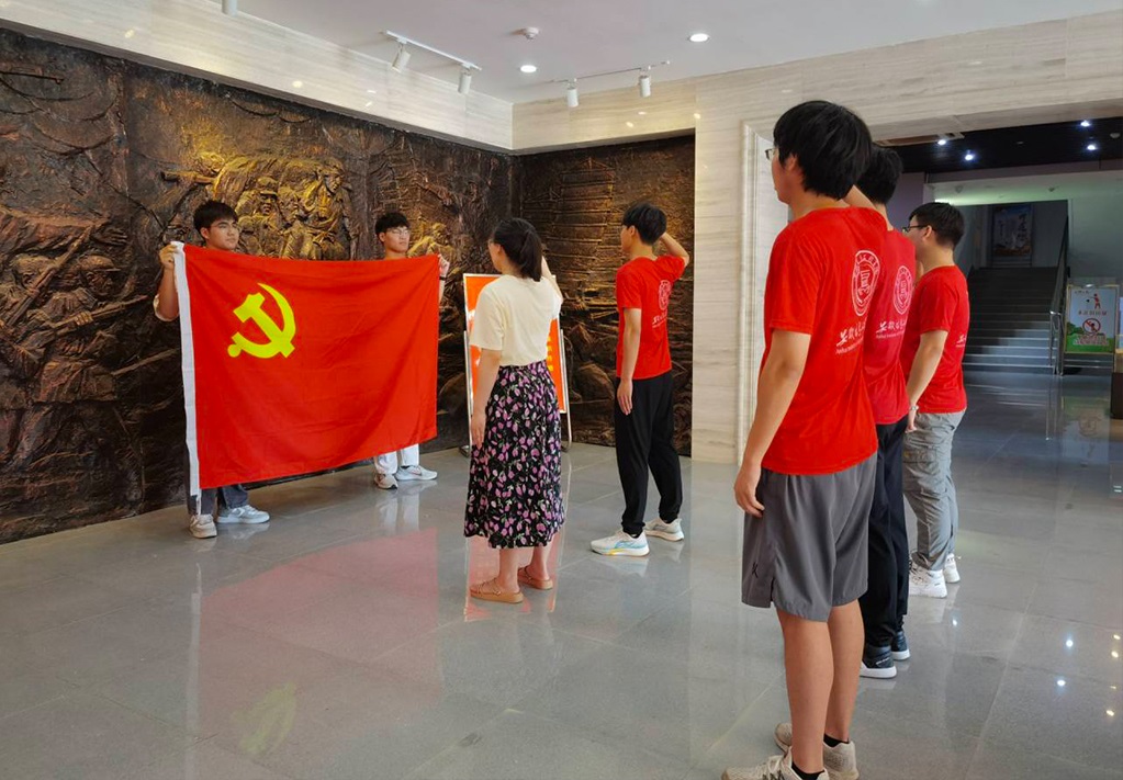 (实践团在党旗下庄严宣誓)