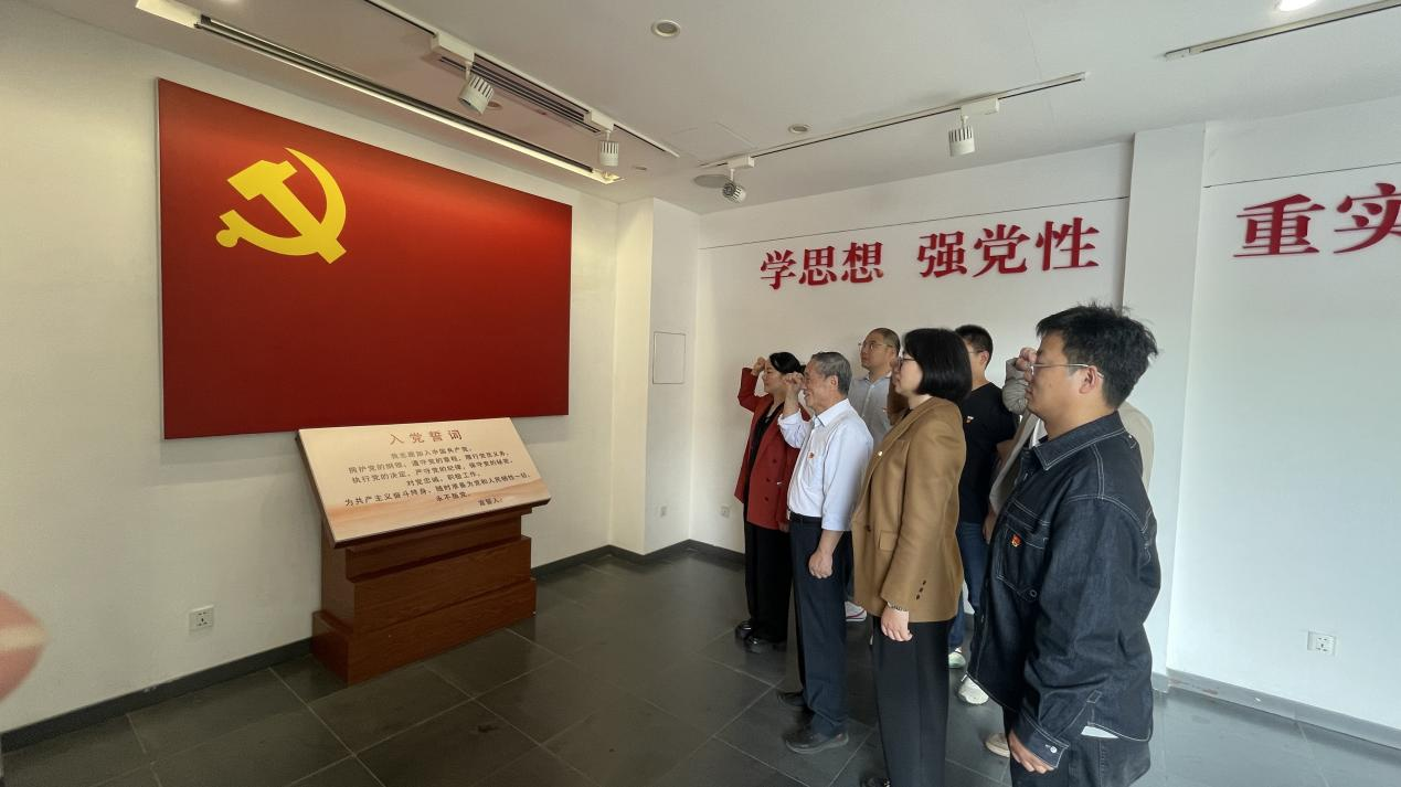 “我志愿加入中国共产党,拥护党的纲领……为共产主义奋斗终身,随时准备为党和人民牺牲一切,永不叛党。”在宣誓厅,面对庄严的党旗,全体党员一起举起右手,在鲜红的党旗下郑重宣誓,重温了入党誓词。