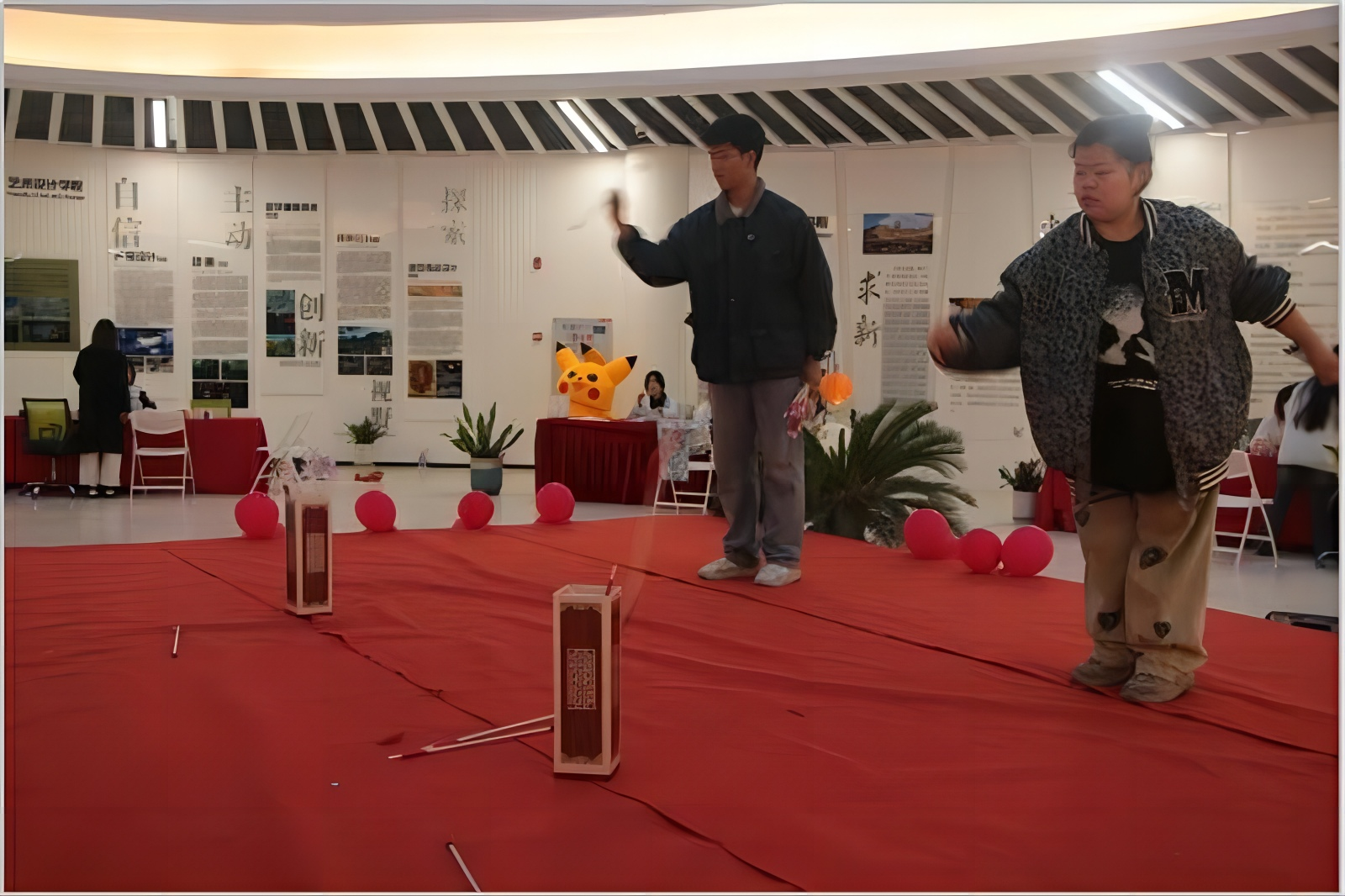 本网讯 为切实弘扬优秀传统文化,激发广大青年学子的爱国情、强国志、报国行,进一步提升民族自豪感,坚定文化自信,11月22日下午,艺术设计学院在博艺楼举办“千年古韵,礼艺华夏”大学生创意节活动,将中华优秀传统文化以全新的方式融入校园生活,活动现场气氛热烈。