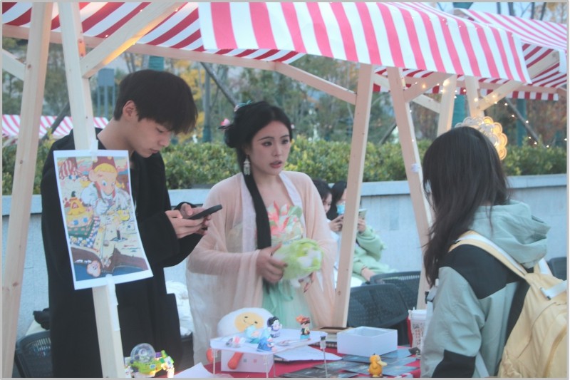 艺术设计学院以创意市集为依托,充分发挥“美育引领创意、创意引领创新、创新引领创业”的教育理念引领作用,以创意市集小摊位,点燃创新创业大梦想。学生摊主各显其能,将自己亲手制作的手绘作品、插花作品、雕塑作品等各式各样的物品进行自由交易,尽展青年学子的青春活力与创造力,真正实现了以创意奋进为素材,拓展思政教育中的美育实践。