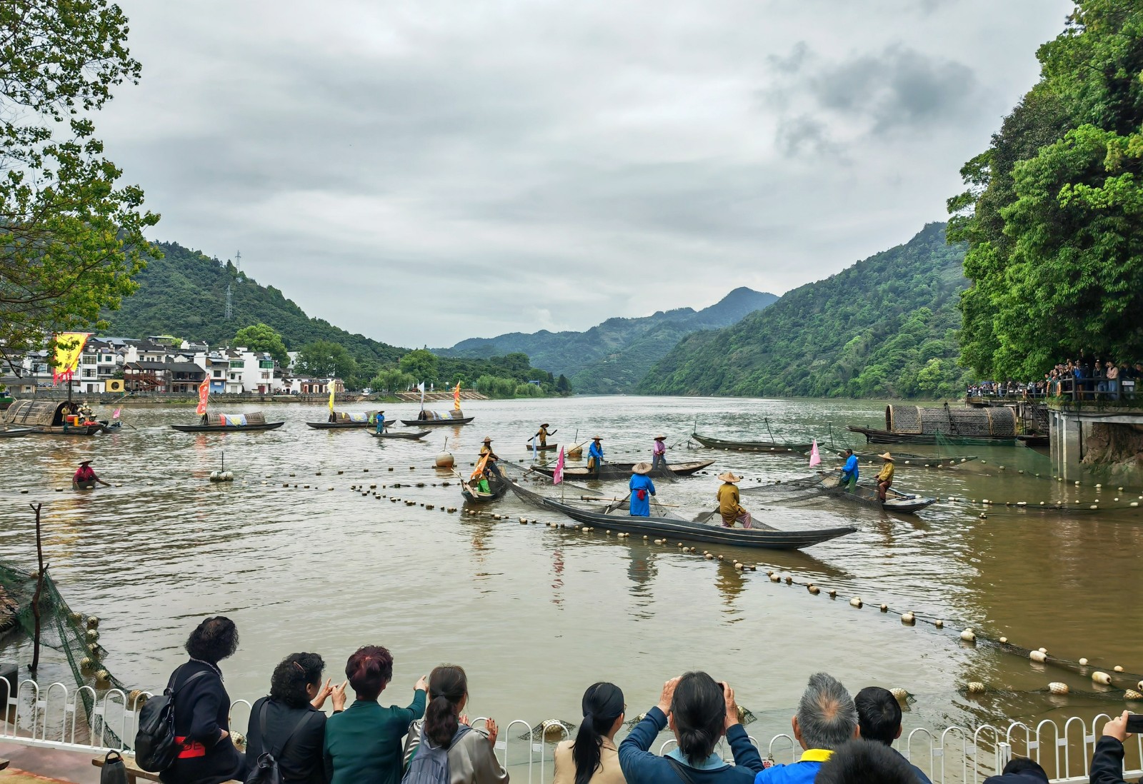 团建第二条线路位于黄山市歙县。团队先乘船沿素有“东方多瑙河”之称的新安江漂流而过,领略沿线独特的山水人文景观。连日的雨水让原本青绿的江水遍染金黄,新安江两岸层山叠嶂,云雾缭绕,山林外星星村落点缀,这些以徽派建筑为特色的村落,鳞次栉比的层楼叠院与旖旎的湖光山色交相辉映,处处是景,步步入画,美不胜收。随后驱车前往中国四大古城之一,被誉为“东南邹鲁、礼仪之邦”的徽州古城,徽州府衙、许国石坊、长庆寺塔、谯楼、曹氏二宅、渔梁街、斗山街、徽园等以及镶嵌其间的古色古香的三百余幢古民居,徽文化便淋漓尽致的体现其中。