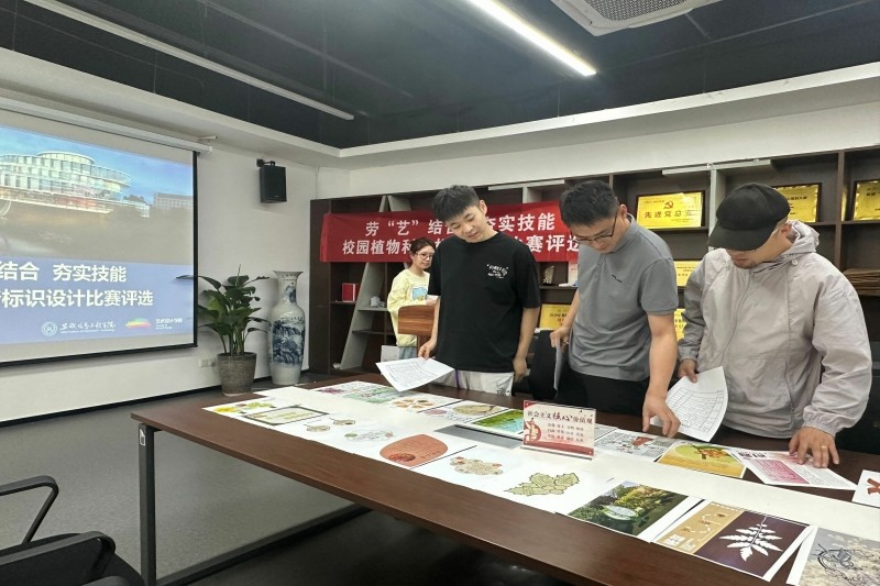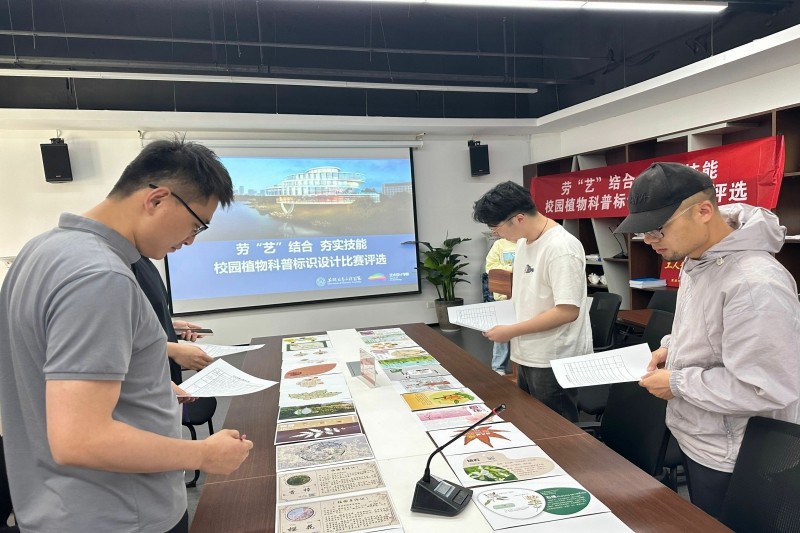 本次比赛主题是“劳艺结合,夯实技能”,艺术设计学院3个年级、5个专业共100余人同台竞技、激烈角逐,比赛采取初评和终评两个阶段。参赛学生在校园做植物调研采样,设计该植物的科普标识设计作品,优秀作品由学生制作挂至校园内,用于绿植美化。