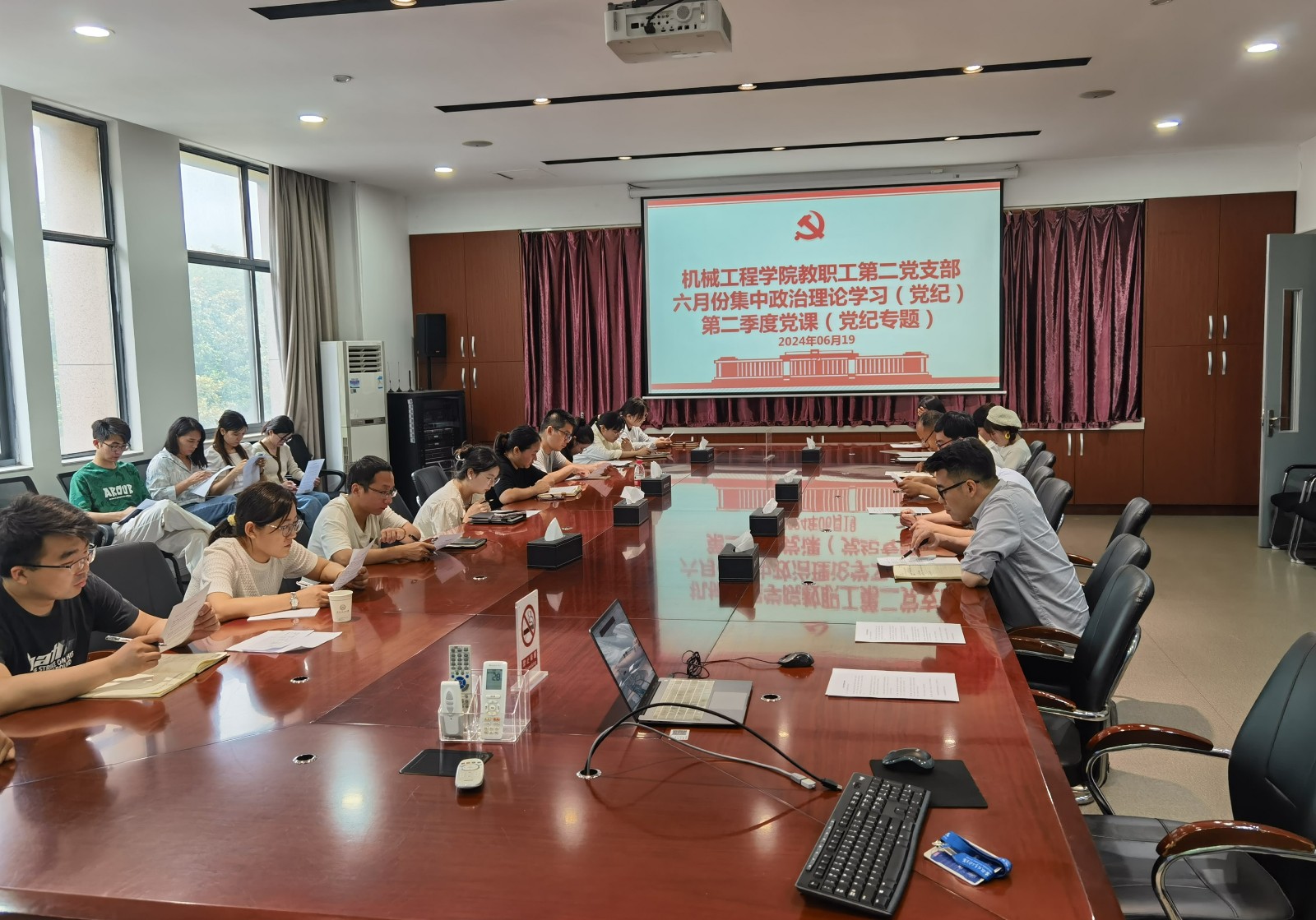 本网讯 为了贯彻落实学校党委要求,机械学院党总支整体部署,开展党纪学习教育,增强党员的纪律意识和党性修养,机械工程学院教工第一党支部、第二党支部于6月19日下午开展了党纪学习教育。