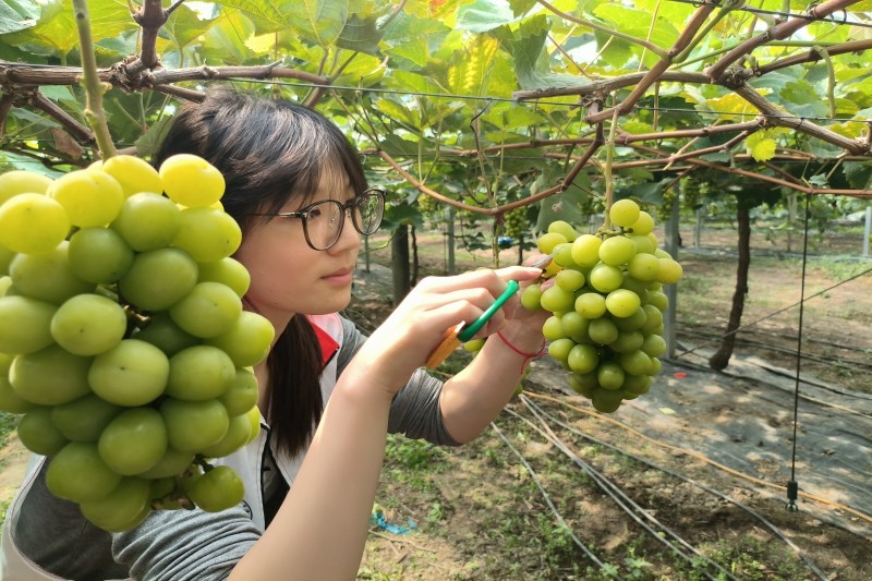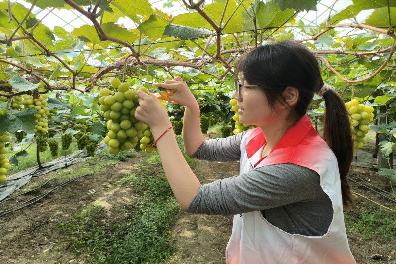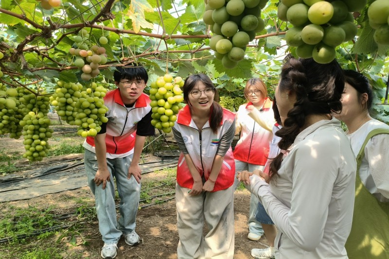 志愿者们在向导老师的专业指导下,亲手摘下了一串串晶莹剔透的果实,感受着劳动的乐趣和收获的喜悦。在亲身实践的过程中,他们不仅学会了如何辨别葡萄的成熟度,也更加深刻的了解了葡萄种植的科学原理与技术。这些知识的背后,是现代农业科技的快速发展,使得果园管理更加高效和环保。