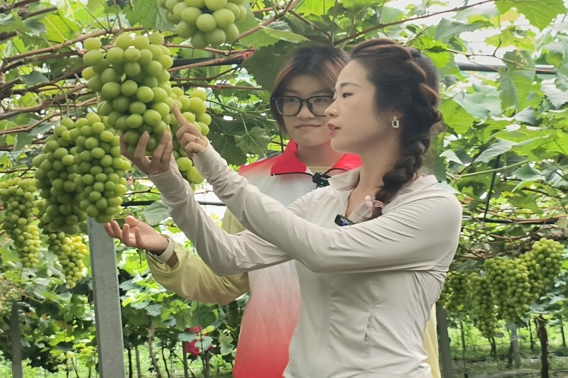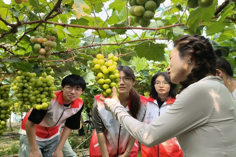 本网讯 为积极响应学校暑期“三下乡”社会实践活动的号召,丰富学生假期的生活,让学生在实践中积累经验、锻炼品格,为乡村振兴敬献绵薄之力。由艺术设计学院产品2202班学生组织的“乡村振兴实践团队”在团总支书记胡亚男老师的带领下前往位于芜湖县六郎镇的乐摘葡萄园开展暑期社会实践活动。在这片绿意盎然的土地上,学生们不仅亲手体验了葡萄采摘的乐趣,还深刻感受到科技创新引领农业发展新时代,更是通过这一活动增强了对自然与农业发展成果的喜爱与尊重。