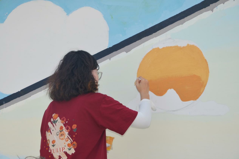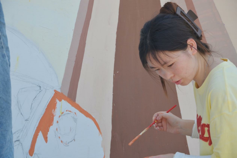 志愿者们走入乡村,与当地村民、营地工作人员同吃同劳动,共话乡村振兴的美好未来。通过细致地调研走访,队员们对天源时光创意营地的产业结构、文化传统有了全面而深入地了解。实地考察完后,队员们发挥专业优势就所了解到的营地特色和营地负责人形象为营地设计主题IP墙绘。