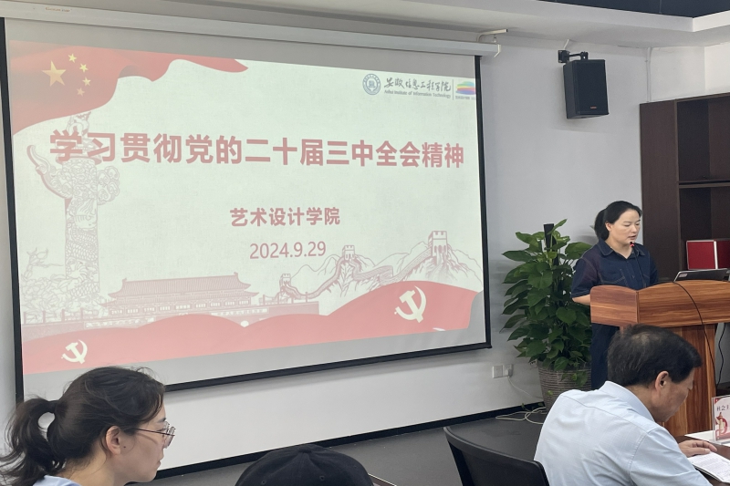 本网讯 领学促学强本领,思想赋能增实效。为进一步深入学习贯彻党的二十届三中全会精神,切实引导广大师生深入理解、全面把握党的二十届三中全会精神实质,把思想和行动统一到党中央的决策部署上来,凝心聚力推进学校高质量发展。9月29日下午,艺术设计学院党总支书记钱琳宣讲党的二十届三中全会精神,推动全会精神走深走实,艺术设计学院全体教职工参会。