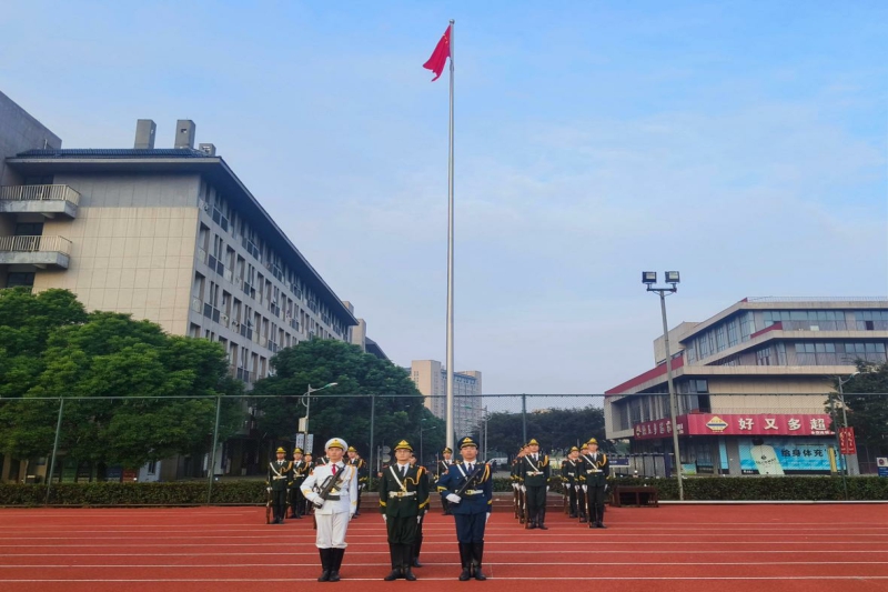 本网讯 为进一步弘扬爱国主义精神,促进新时代青年勇担时代重任,投身到祖国的各项事业中去。10月21日清晨,由校学生处主办、艺术设计学院承办的升国旗仪式暨“同抒爱国情怀,共话祖国新貌”国旗下的思政课在学校体育场举行。校党委书记陈永红、各学院分管学工负责人、学工秘书、2024级辅导员以及2024级全体学生参加此次活动。活动由艺术设计学院副院长钱琳主持。