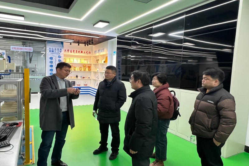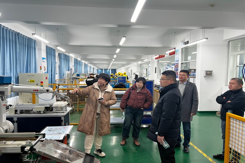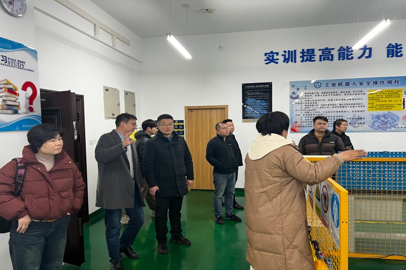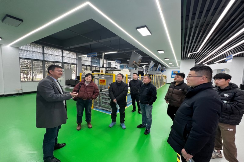马利祥一行首先实地参观考察了由金石兴公司与武汉东湖学院、武昌工学院联合共建的智能制造产业学院。在晏传杰的引导和介绍下,学院考察组深入了解了校企联合实验室建设、课程体系开发及“双师型”教学团队培养等方面的合作成果。产业学院通过校企“双主体”管理机制,将企业技术标准融入教学实践,形成“项目化教学+岗位实训”闭环培养模式,为智能制造领域输送了大量高素质应用型人才。