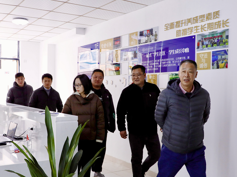 (校领导走访机械学院学生社区工作站)