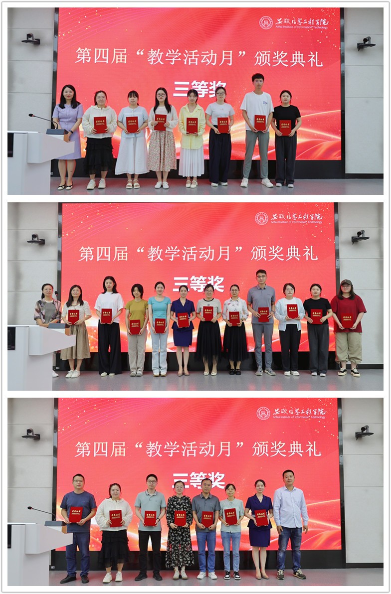 随后,颁奖环节在热烈的掌声中进行。颁奖嘉宾依次颁发了教学改革观摩课优秀教师、各类评选活动一、二、三等奖及优秀奖,并与获奖教师合影留念。