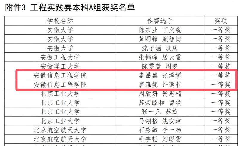 本网讯 近日,第十二届“大唐杯”全国大学生新一代信息通信技术大赛(以下简称“大唐杯”比赛)安徽赛区三个赛道(赛道一:工程实践赛、赛道二:产教融合5G+创新应用赛、赛道三:ICT基础通识赛)比赛成绩陆续揭晓。今年,大唐杯安徽省赛共有包括中国科学技术大学、合肥工业大学、安徽大学等在内的21所本科院校参赛。我校学生获得省一等奖17组(晋级国赛),省二等奖30组,省三等奖50组,获奖质量及数量再居安徽省参赛高校之首。