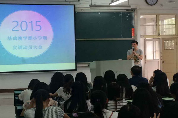 6月27日下午4时,基础教学部在文津校区西三101教室召开了小学期实训动员会。基础教学部常务副主任刘树德、副主任王艳伟,带队辅导员、带队老师以及全体2012级学生参加了本次动员大会。