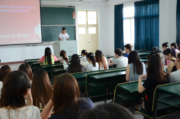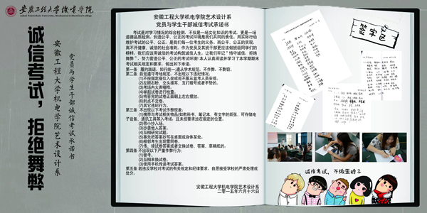 为营造良好的学习氛围,体现公平公正的考试原则,6月18日中午12点30分,艺术设计系学生会于西三501举办了诚信考试承诺书签字活动。参加本次活动的有艺术设计系学生会全体成员、艺术设计系学生党员及学生干部。