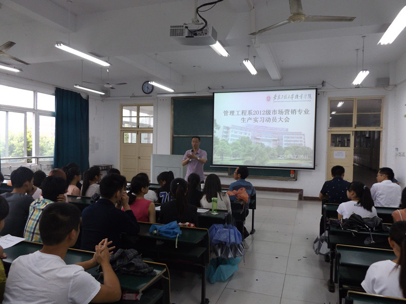 7月6日下午4时,管理工程系在西三202教室召开12级市场营销专业生产实习动员大会。院长吴敏,该系学工秘书和辅导员以及即将外出参加生产实习的全体学生参加了本次大会。会议由系主任程幼明主持。
