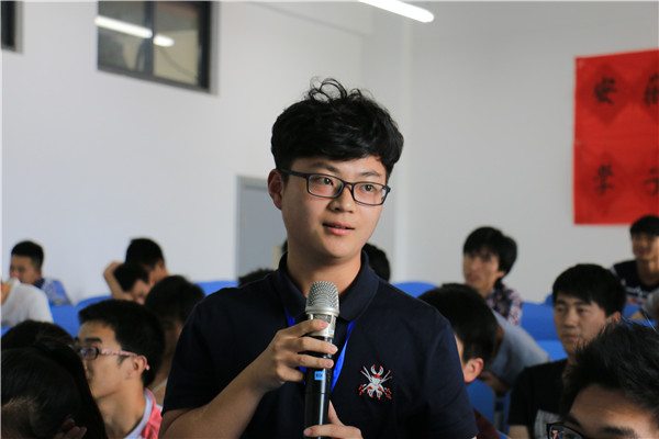 作为中共预备党员的他,入学以来连续两学年获得国家奖学金、校特等奖学金,曾获2014年安徽省“TI”杯大学生电子设计大赛(本科组)一等奖、获得团队实用新型专利一项、2014年第三届芜湖市大学生专利创新大赛三等奖等荣誉。他向大家分享了他的学习观,不要闷头苦学,要把兴趣当做自己的老师,多多参与社会实践,培养自己的动手能力,将书本上的知识运用到实践中。他更多次强调我们要更加严格要求自己,要用勤奋和努力向梦想奋进。