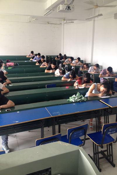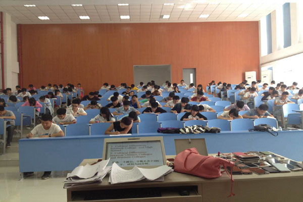 赛前各监考教师对赛场做了精心布置,对参赛人员进行编号入座,以严格的赛场纪律,保证比赛的公平公正。本次竞赛,全院两个校区近400名学生踊跃报名参加。比赛过程中学生们答题认真,时而伏案思考,时而奋笔疾书。时长一个小时的大赛氛围严肃而紧张。比赛于3点30分准时结束。