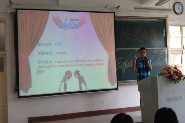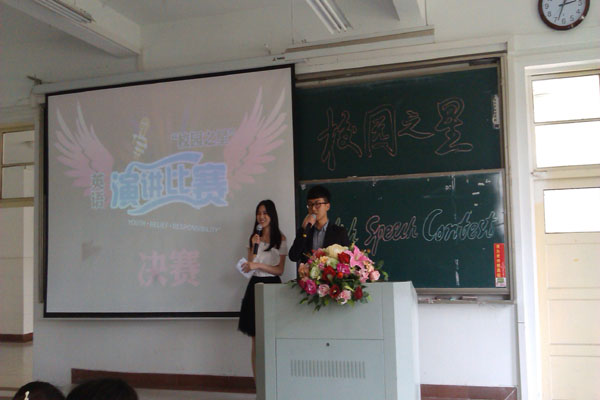 为了激发我院学生英语学习热情,培养同学们对英语学习的兴趣,营造一个良好的英语学习氛围,由教务处主办,基础教学部承办的“校园之星”英语演讲比赛决赛于5月20日下午在文津校区西三101室正式拉开帷幕。