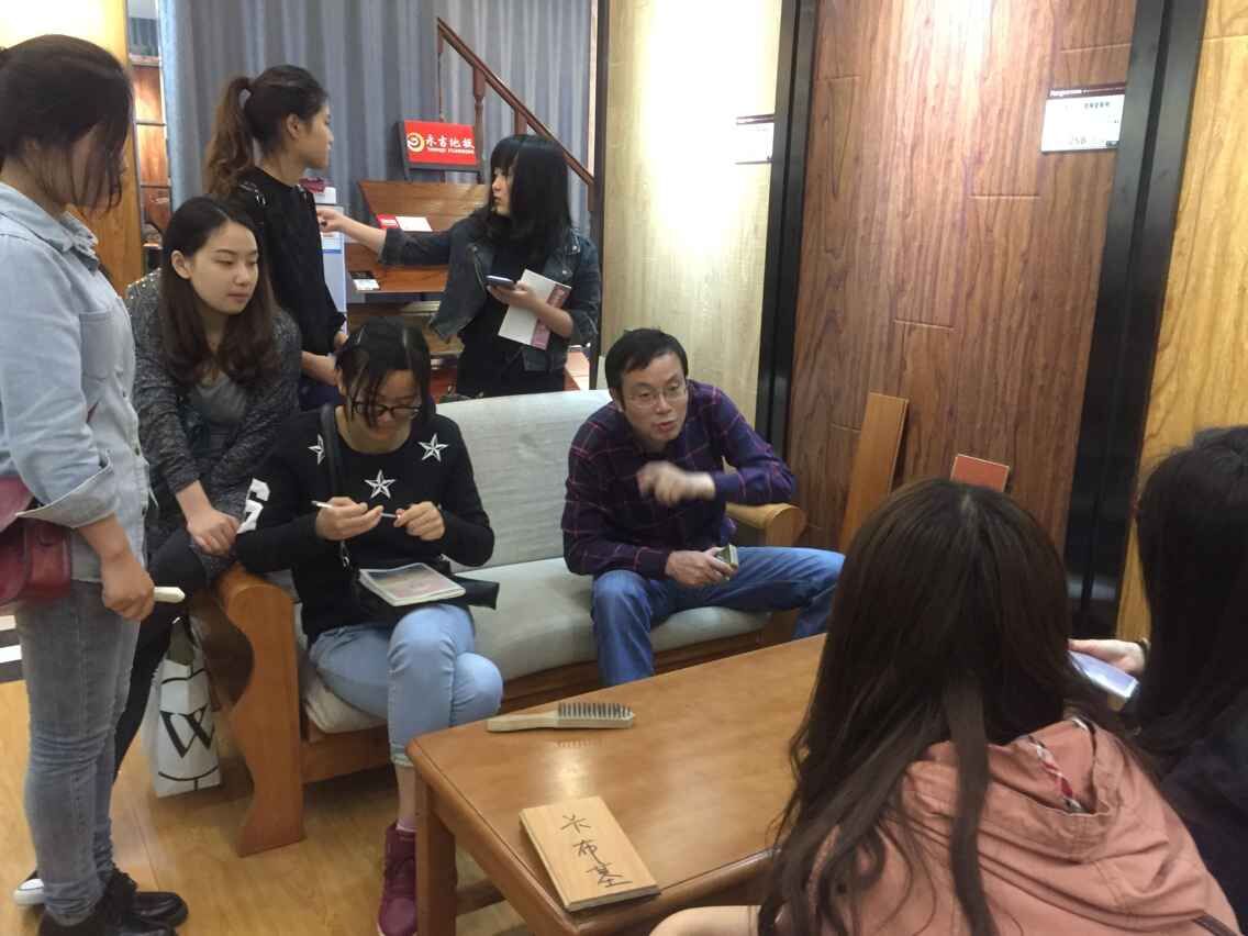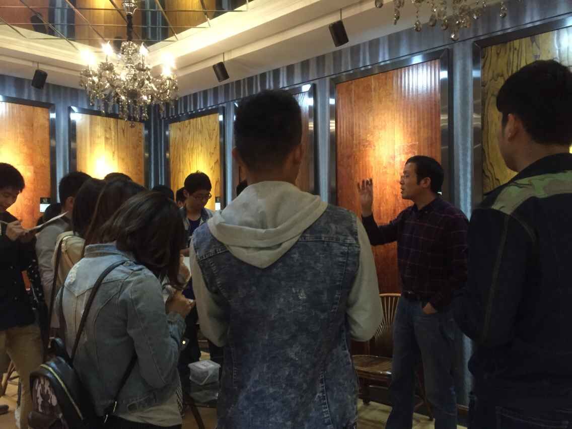 本次主要考察的是木地板和墙纸、墙布装饰材料。专卖店的老板们很热情的向同学们介绍了市面上常用的产品,详细介绍了材料的制作工艺以及各品种之间的区别,教会了大家如何区分各类材料。同学们也都积极地提出自己不明白的问题,老板们也都一一详细解答。考察过程中,同学们亲自体验和触摸到材料的肌理和质感,探究其工艺,全面地认识了各种材料。