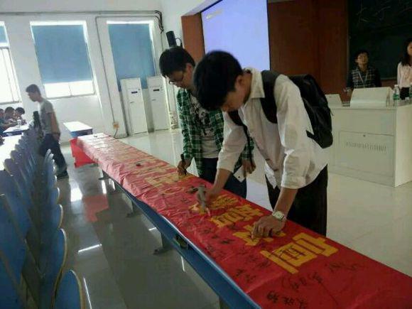 讲座结束后,同学们纷纷在横幅上签上自己的姓名并表示要从自身做起,养成良好的生活习惯,争做健康、文明的安工程机电学子!