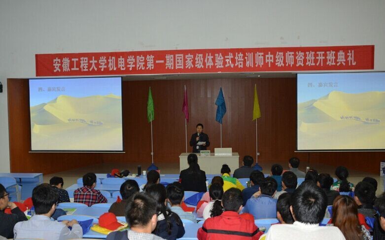4月18日上午9点,“国家级体验式培训师中级师资班”在我院新芜校区A1楼W101举行隆重而简朴的开班典礼。大学生综合素质教育与拓展中心主任助理尹伟,安徽工程大学体验教育中心主任薛保红,安徽工程大学体验教育中心研究员南晨峰,大学生综合素质教育与拓展中心首席拓展训练师洪杰及本次培训班的46名学员参加开班典礼。