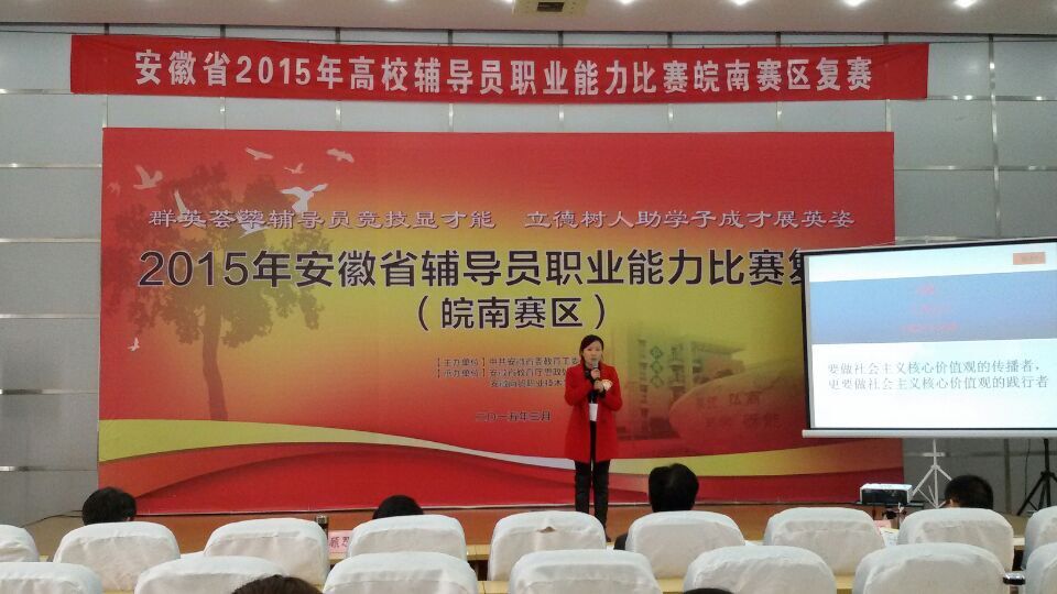 为推动高校辅导员职业化、专业化发展,提高辅导员的职业技能和工作水平,由中共安徽省委教育工委主办的2015年安徽省辅导员职业能力大赛皖南赛区复赛于3月20日在安徽商贸职业技术学院拉开帷幕。我院信息工程系辅导员汪昱娟、机械工程系辅导员左倩倩参加了比赛。