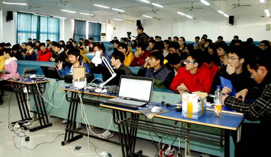 本次报告会以PPT演讲和实物演示的方式进行。由一组组创意团队制作的智能窗帘系统、飞速学习网、门禁系统与电器节能模型、移动式环境侦测机器人、友缘网、育儿乐园网等智能控制作品,都具有相当的网络技术难度和较强的实际运用功能,因此吸引了众多的学子津津有味地观看,并与作者团队进行了互动交流。