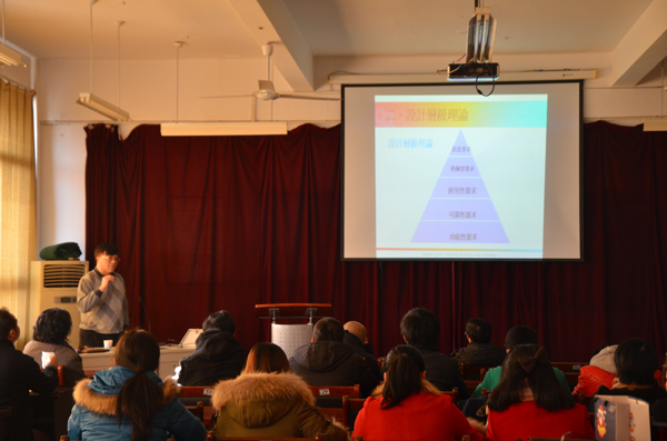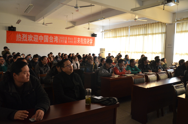 为增加对外交流,感受来自台湾的设计思维,2014年12月31日,艺术设计系王淮梁主任带领全系教师参加安徽工程大学艺术学院系列学术报告。此次报告由安徽工程大学艺术学院举办,台湾云林科技大学管倖生教授和台湾亚洲大学阮绿茵教授主讲,我院艺术设计系和安徽工程大学近百名教师聆听了报告会。