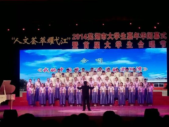 “人文荟萃耀弋江”2014年芜湖市大学生嘉年华是由芜湖市文化馆、芜湖市音乐家协会、弋江区文化广播新闻出版局联合主办。此次合唱节作为闭幕式的重要环节,吸引了来自芜湖市各大高校共九支合唱团,与市文化馆合唱团、弋江区老年大学合唱团同台献技,“欢乐芜湖,唱响弋江”,展示出各高校良好的精神面貌和芜湖市大学生的风采。