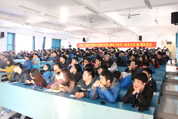 12月24日下午2:30,中科大教授岳丽华学术报告暨计算机与软件工程系主任(兼)聘任仪式在文津校区西二503教室举行。院长吴敏及计算机与软件工程系学生代表参加了聘任仪式暨报告会。