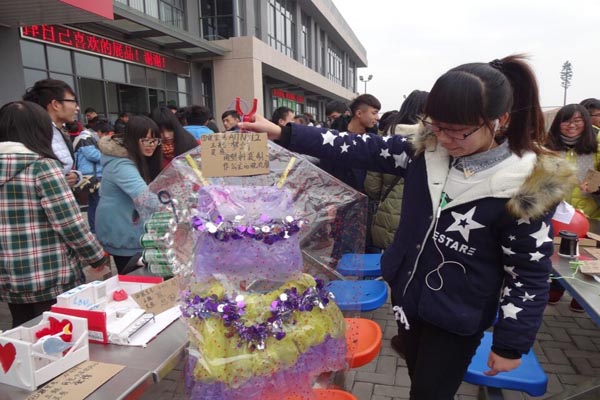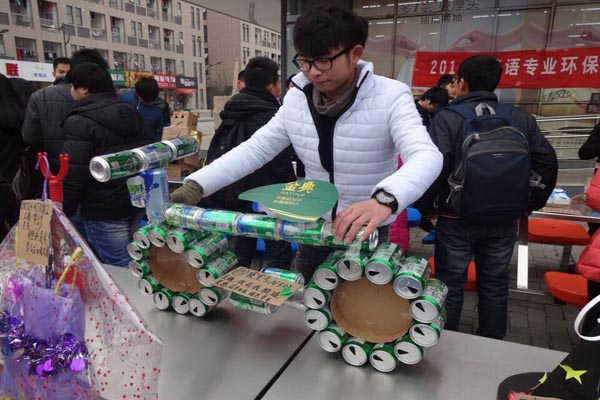 12月19日中午,每一位经过的食堂东门的同学都会不禁停下自己的脚步,被眼前的景象所吸引:一个个或细腻或粗犷,或现代或古朴的作品被放置在展示台上,它们造型不一却有着一个共同点——原材料都是来自身边的废弃物。