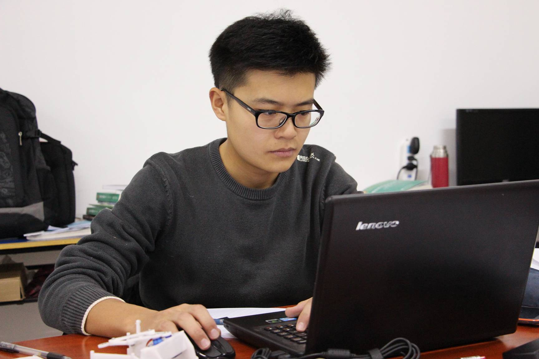 镜头闪回之四:说起李哲楠主导的电子协会,在学院名气颇大。它成立于2013年11月18日。刚成立时只有二十几个人,后来招新之后,拥有了大二140人和大一新生170人共300余人的宏大队伍,今年七月份首次承办了我院信息工程系电子设计大赛的活动。在省“飞思卡尔”智能汽车和省电子设计大赛中,李哲楠和他的伙伴们敢打敢拼,呕心沥血,终于使我院的代表队脱颖而出令人刮目相看。另外,在院14届的运动会上,协会的航拍爱好者也是电子协会的副会长黄涛还为我院第一期视频新闻提供了航拍视频,引起了许多人的关注和赞叹。一提起这,李哲楠禁不住高兴地说:“在这里,你会得到更多的锻炼,得到更多提高自己动手能力的机会,可以尽情地发挥你的创造力,尽情地舒展你活跃的思维。我们期待着更多电子爱好者的加入”。
