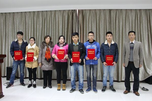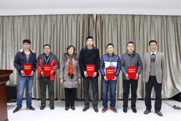 而后,马健宣读了荣获本年度先进集体和先进个人名单:教务处、基础教学部、院团委获得“先进集体”称号;5位老师和10名学生记者荣获“先进个人”荣誉称号。院领导高兴地为获奖者颁发锦旗、证书和奖金,而后与获奖者合影留念。