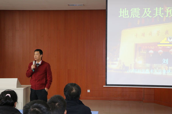 12月18日,我院有幸邀请到中国科技大学教授、博士生导师刘斌给14级全体师生带来了一场名为“地震及其预测与预防”的学术讲座。吴敏主持了本次讲座。