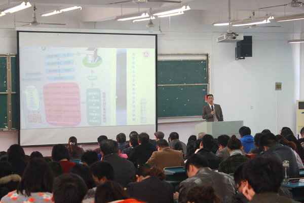 11月26日下午2:30,我院在文津校区西二503教室举行访台高校学术报告会。院长吴敏就我院近期赴台高校访问团一行四人的行程、主要内容以及收获与借鉴等方面作了生动的阐述。副院长胡守信、许晓菁、毛玉敏及全体教职工参加了本次报告会。